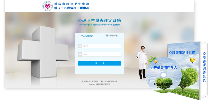 心理健康测评系统由重庆市精神卫生中心专家指导研发,使用了先进的测试方法,依据经典的心理学理论,通过一系列的数据处理将人的心理特征数量化,以此来衡量个体心理因素水平以及心理差异。本系统针对精神卫生中心(医院)、心理咨询门诊和心理咨询所工作时使用,为医生对患者开展心理检查、建立心理与药物治疗档案、开展课题研究而研发的应用心理学专业软件。
