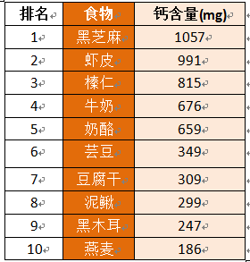 100克黑芝麻中含有1057毫克的钙,是含钙量最高的补钙圣品。芝麻含有人体所需的多种营养素,其蛋白质含量多于肉类,含钙量是牛奶的2倍,还有维生素A、D、E及丰富的B族维生素,这些都是维护骨骼功能正常的重要物质,尤其芝麻含有丰富的油酸、亚油酸及甘油酸,均系不饱和脂肪酸,是人体组织细胞的重要组成成分。从现代营养学分析: