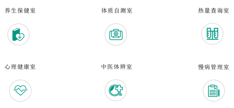 你选择了专业服务机构,就可进入到健康管理互动区,你就可以有针对性地进入疾病控制室、体质自测室、热量查询室、心理健康室、中医辨识室、慢病管理室进行体验、检测、管理。见下图: