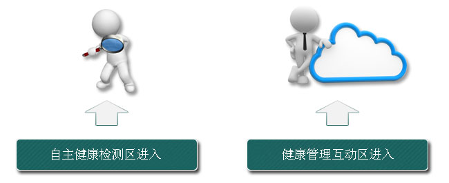 进入网站首页后,有二个通道可选择直接进入,如果你仅仅只是游客,只想简单的了解下,可选择“自主健康检测区进入”,如果你想加强健康管理,建议你选择“健康管理互动区进入”。见下图: