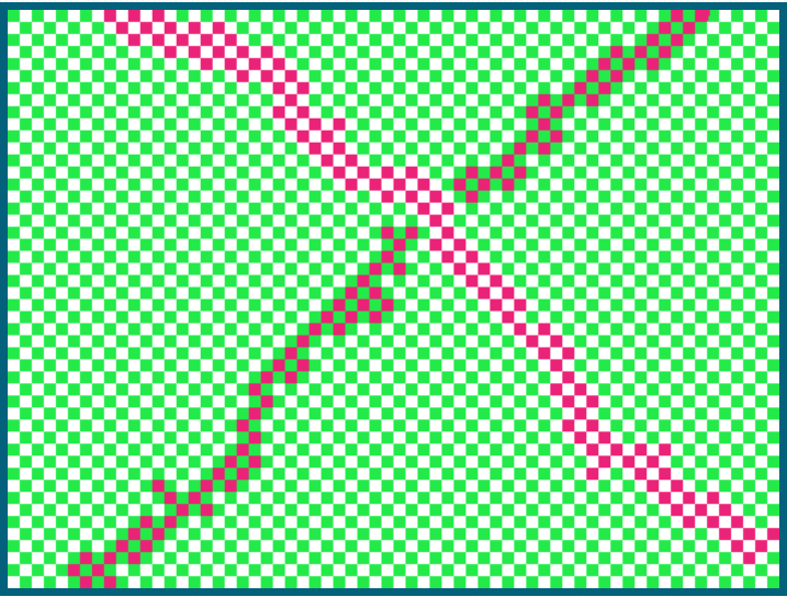 图中只有三种颜色,分別是:白、绿及粉红。但是看起來却像是有两种不同的粉红色,其实是同一个颜色喔!