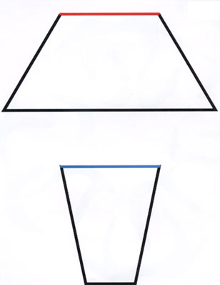 【解析】红线比蓝线显得长一点,尽管它们的长度完全相等。小于90°的角使包含它【解析】红线比蓝线显得长一点,尽管它们的长度完全相等。小于90°的角使包含它的边显得短一些,而大于90°的角使包含它的边显得长一些。这就是梯形幻觉。