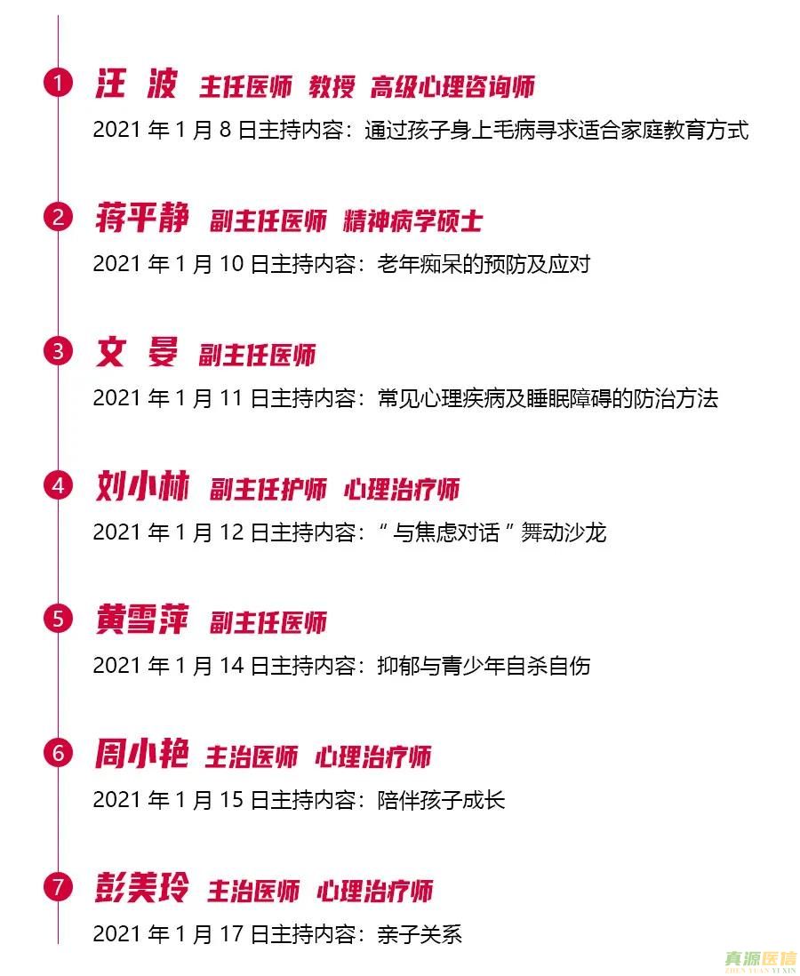 沙龙由重庆市精神卫生中心(西南大学附属心理医院)等医院的心理专家主持。具体时间安排如下: