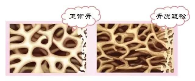 在显微镜下骨质疏松的骨胳呈蜂窝状,空隙比正常健康的骨胳更大。筛孔越多,骨胳就脆弱,更易出现骨折,即轻微的创伤或无外伤的情况下也会发生骨折。